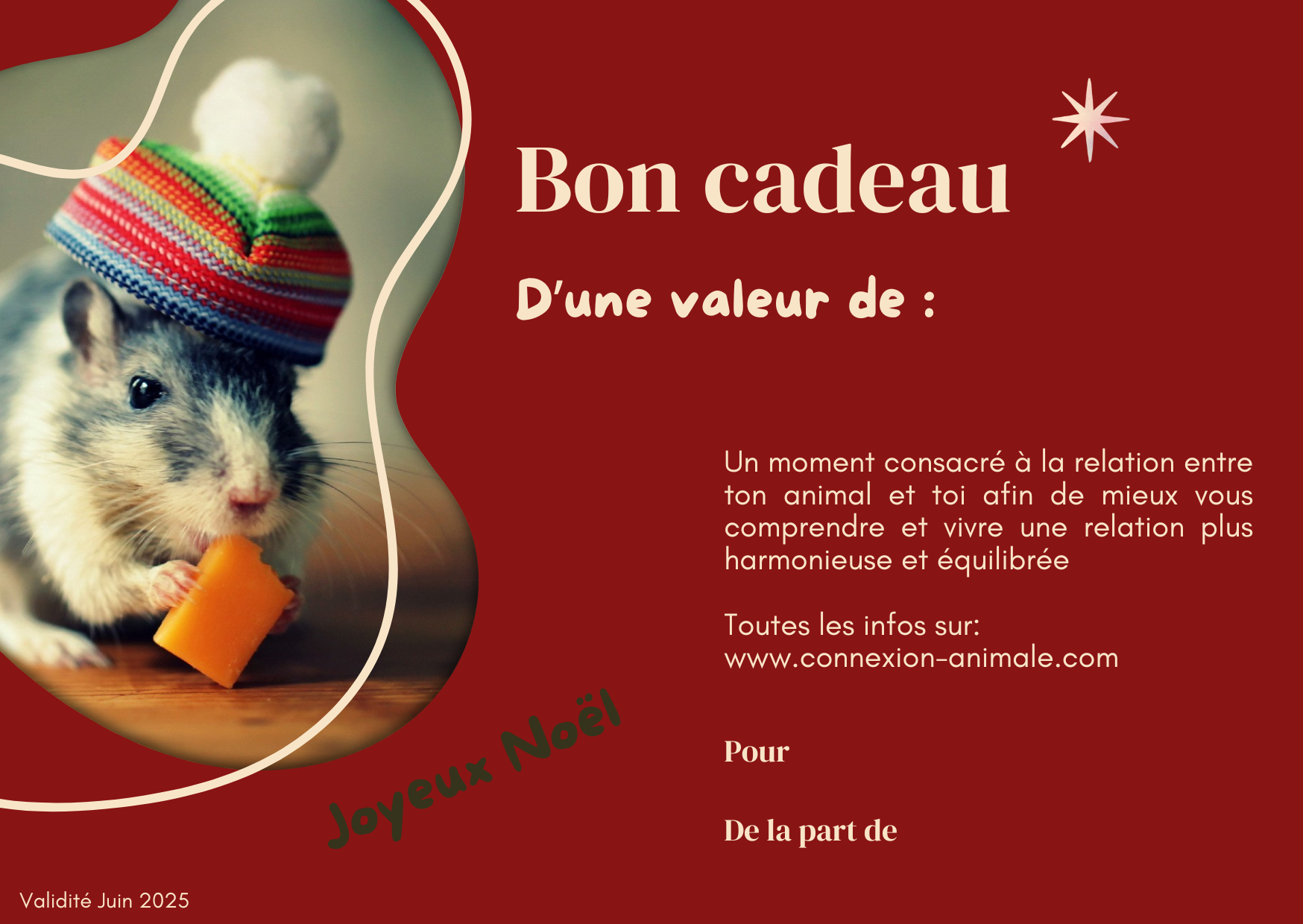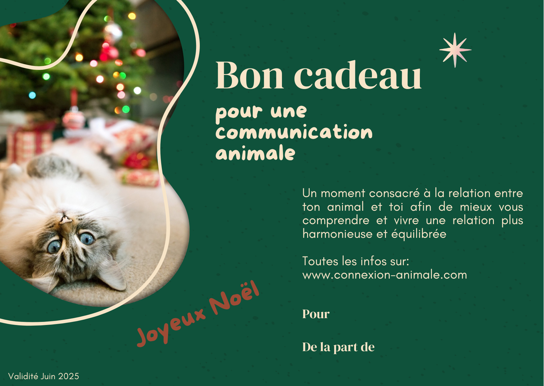Vous souhaitez offrir un cadeau original et enrichissant à vos proches, voici des bons cadeaux pour une communication avec leur animal, un soin énergétique ou une journée de formation ! Je peux adapter les bons cadeaux pour toutes occasions (fête, anniversaire…), n’hésitez pas à me contacter 🙂 Je propose plusieurs modèles.